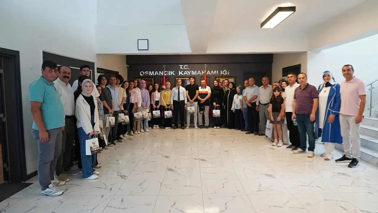 Osmancık Kaymakamlığı toplantı salonunda gerçekleştirilen törende, ükseköğretim Kurumları Sınavı'nda gösterdikleri üstün başarıyla dereceye giren öğrenciler, aileleri ve okul yöneticileri bir araya geldi. Osmancık Kaymakamı Furkan Duman, ilk 30 bin içerisine giren öğrencileri tek tek tebrik ederek ödüllerini takdim etti. Öğrencilerin bu başarısının hem aileleri hem de ilçe için büyük bir gurur kaynağı olduğunu belirten Duman, öğrencilere bundan sonraki yükseköğrenim hayatlarında da başarılar diledi.