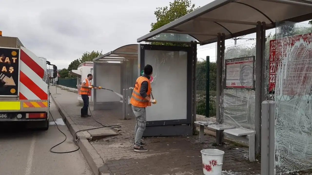 Haftanın ilk gününde vatandaşların yoğun olarak kullanacağı otobüs duraklarının belirli periyotlarla temizliğinin yapılmaya devam edeceği ifade edildi.