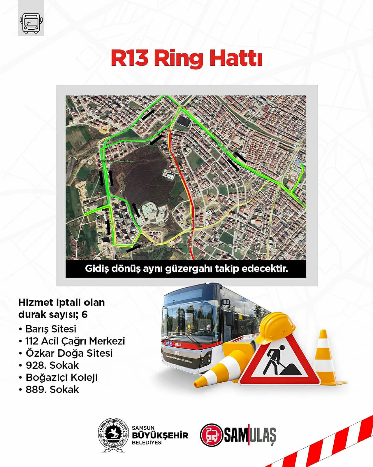 Samsun Büyükşehir Belediyesi tarafından çalışmalar boyunca vatandaşların günlük ulaşım planlarını olumsuz etkilememek için titiz bir planlama süreci yürütülüyor. Ancak yoğun çalışmalar sebebiyle bazı otobüs duraklarında geçici olarak hizmet sunulamayacak. Söz konusu duraklar ve ilgili otobüs hatları şu şekilde açıklandı: