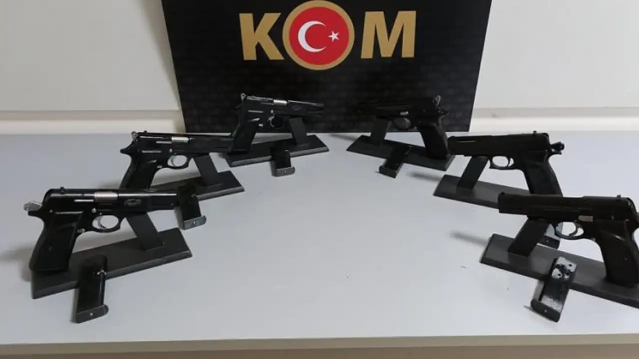 Otobüsteki yolcunun sırt çantasından 6 tabanca ele geçti