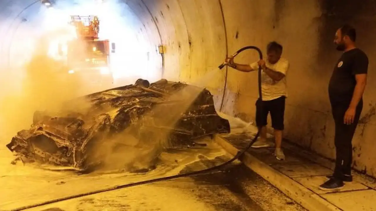 Gerze'de tünelde kaza yapan otomobil alev topuna döndü