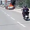 Bursa'da seyir halinde olan otomobil alev alev yandı. O anlar amatör kameraya yansıdı.
