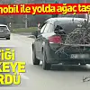 Otomobil ile yolda ağaç taşıdı, trafiği tehlikeye düşürdü