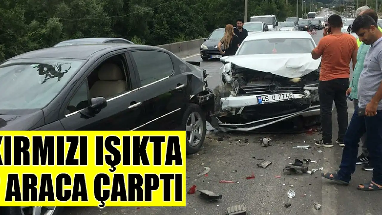 Samsun'da otomobilin kırmızı ışıkta 2 otomobile arkadan çarpması sonucu meydana gelen trafik kazasında 3 kişi yaralandı.
