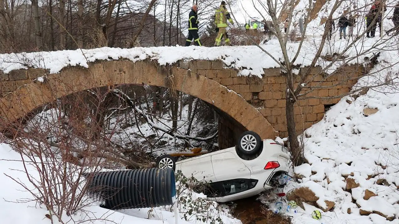 Alınan bilgiye göre, 29 AAJ 723 plakalı Seat marka otomobiliyle tarihi Süleymaniye Mahallesi'nden Gözeler köyü istikametine ilerleyen Okan Demir (31), Kırkpavli mevkiindeki tarihi köprüye geldiğinde buzlu yolda aracının direksiyon hakimiyetini kaybetti. Virajı alamayan araç köprüden aşağıya uçtu. Dere yatağına ters dönerek düşen otomobilde bulunan sürücü Demir ve arkadaşı Kaan Çevik (24), kendi imkanlarıyla araçtan çıktı. İhbar üzerine gelen 112 Acil Sağlık ekipleri tarafından ilk müdahalesi olay yerinde yapılan Demir ve Çevik, Gümüşhane Devlet Hastanesinde tedavi altına alındı. Yaralıların sağlık durumlarının iyi olduğu öğrenildi.