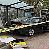 Gaziantep'te direksiyon hakimiyeti kaybolduktan sonra savrulan otomobil, yol kenarındaki otobüs durağına daldı.
