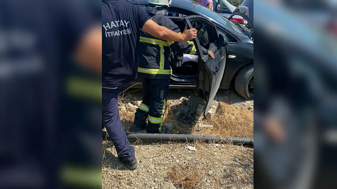 Hatay'da şarampole yuvarlanan otomobilin sürücüsü yaralandı.