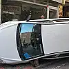 Samsun'da otomobilin kaldırıma çıkarak bir iş yerinin vitrin camına çarptığı kazada araçtan kaçmak için kendini yere atan bir yaya yaralandı