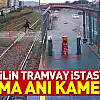 Otomobilin tramvay istasyonuna çarpma anı kamerada