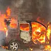 Balıkesir'in Edremit ilçesinde çocuklar bir aracı yaktı.