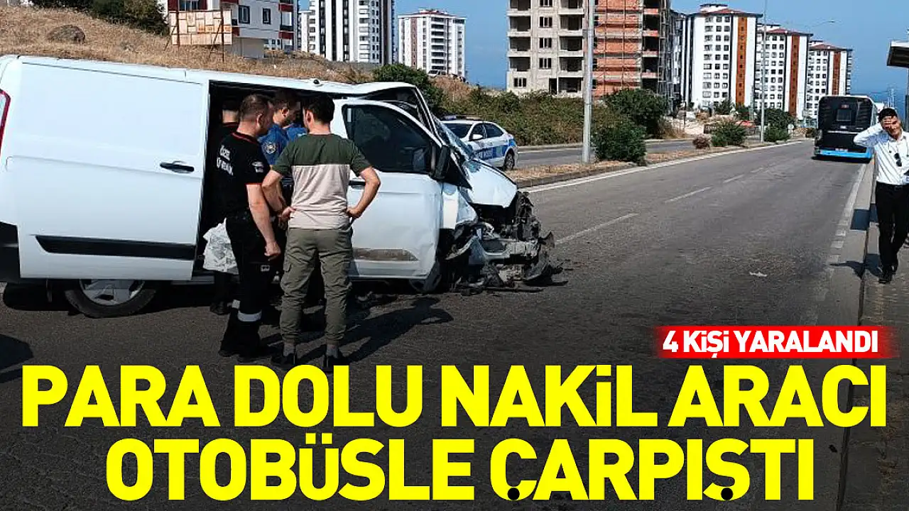 Samsun'da içi 33 poşet banknot dolu olan para nakil aracı, yolcu otobüsü ile çarpıştı. Kazada toplam 4 kişi yaralanırken, nakil aracındaki paralar da başka araçla olay yerinden taşındı.