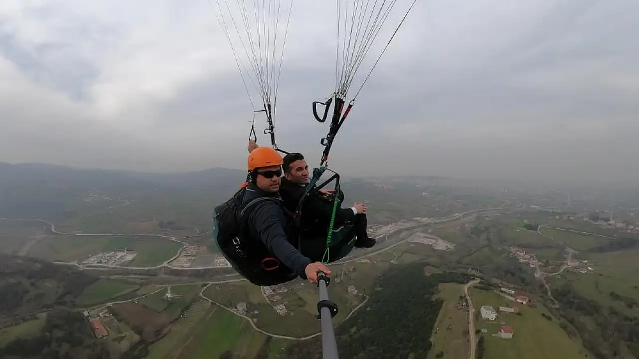 Samsun'da belediye başkan adayı olan Tugay Başsan, projelerini yamaç paraşütünde uçarken anlattı.