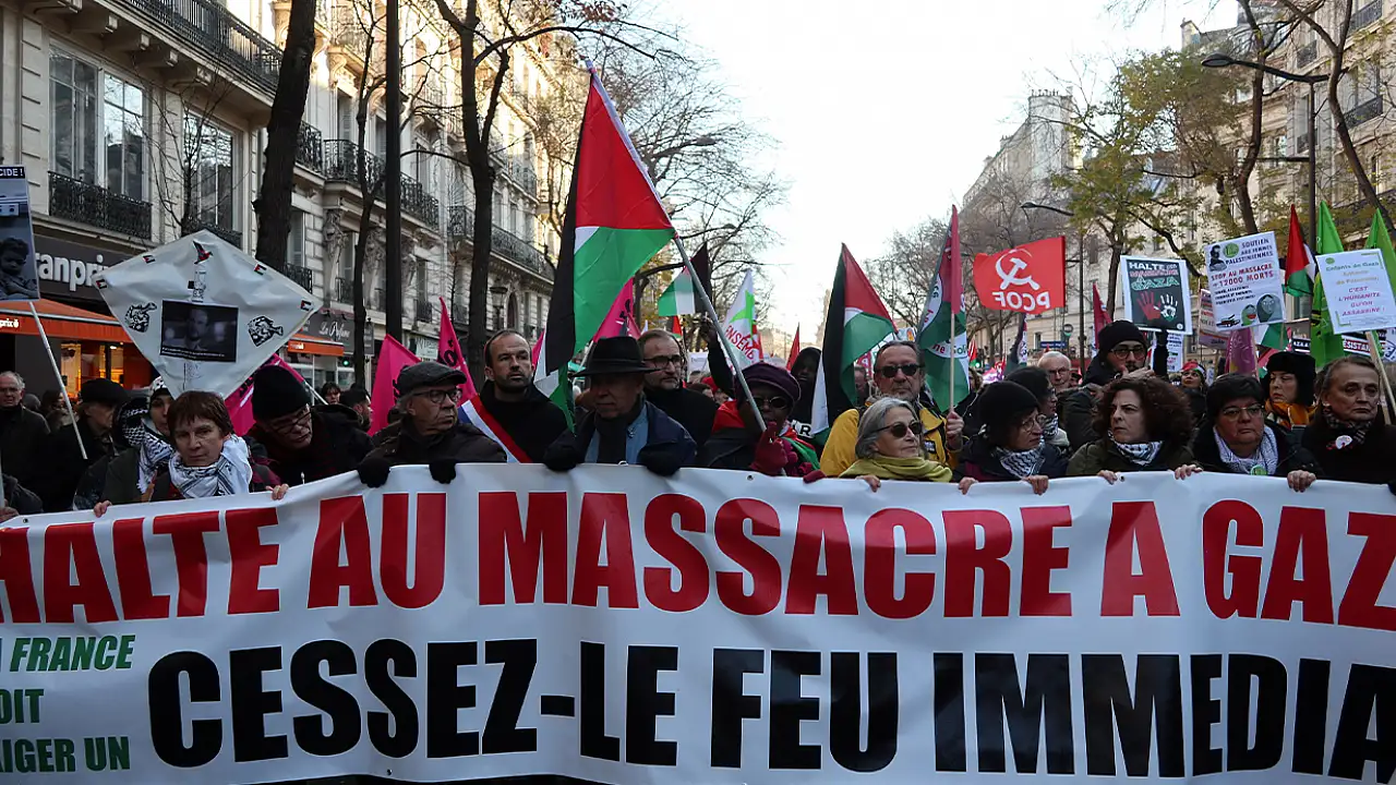 İsrail’in 7 Ekim’den bu yana süren Gazze Şeridi’ne yönelik saldırıları, dünyanın her yerinde protesto edilmeye devam ediyor. Fransa’nın başkenti Paris’te binlerce kişi, İsrail’in Gazze Şeridi’ne yönelik saldırılarına son vermesi ve ateşkes sağlanması için yürüyüş düzenledi. Cumhuriyet Meydanı'nda başlayan yürüyüşe, Boyun Eğmeyen Fransa (LFI) Partisi lideri JeanL Luc Melanchon da destek verdi. Göstericilerin ellerinde Filistin bayraklarının taşındığı yürüyüşe Fransa'da yaşayan İsrail vatandaşlarının da katıldığı görüldü.
