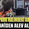 Park halindeki araç alev topuna döndü, itfaiye müdahale ederken patlama meydana geldi