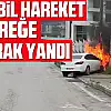 Park halindeki otomobil hareket edip direğe çarparak yandı