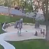 Çocukların oyun oynamaya devam ettiği görüntülerde, dev ağacın saniyeler içinde henüz belirlenemeyen bir sebeple oyun oynayan iki çocuğun üzerine yıkıldığı anlaşılıyor. Olayın ardından parkta bulunan çocukların korku içinde kaçmaya çalıştığı anlarda, çevrede bulunan ailelerin ağacın altında kalan çocukları kurtarmaya çalıştığı görülüyor.