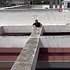 Genç ardından binanın üstündeki kolonlarda dolaşmaya başladı. Duvarlara tırmanan genç son olarak binanın kolonuna atladı. Beton gibi görünen ancak kartonpiyer olan kolonun kırılması sonucu genç içine düştü.