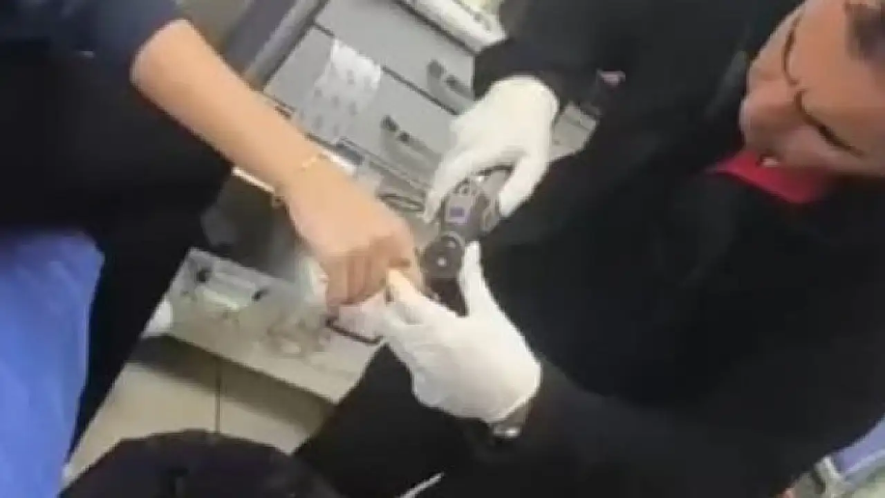 Parmağındaki parça spiral makineyle kesilerek çıkarıldı