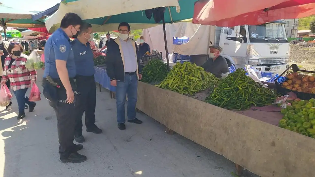 Pazar yeri girişlerine dezenfektanlar yerleştirilirken, her tezgah arasında üçer metre boşluk konuldu. Pazar yerinde kolluk güçleri ve zabıta ekipleri, maske ve mesafe kuralları konusunda sık sık uyarılarda bulundu.