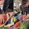 Bir pazar esnafının sattığı karpuzları daha kırmızı ve iştah açıcı göstermek için kırmızı pancar sürdüğü anlara ait görüntüler sosyal medyada büyük yankı uyandırdı.