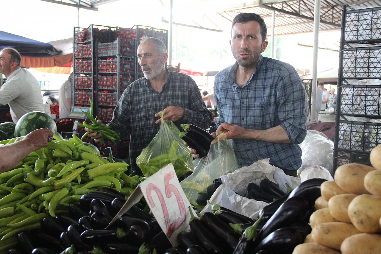 Son haftalarda sebze ve meyve fiyatlarında gözle görülür bir gerileme olduğunu belirten pazarcılar ise, yaz mevsiminin etkisiyle ürün bolluğu yaşandığını ve bunun da fiyatlara olumlu yansıdığını söyledi. Özellikle kış aylarında yüksek fiyattan satılan ürünlerin artık çok daha uygun fiyatlara alıcı bulduğunu dile getiren pazarcı esnafları; “Havalar ısındı, fiyatlar düştü. Bundan sonra da düşmeye devam eder. Kışın 120 TL’ye sattığımız patlıcanı şimdi 25 TL’ye satıyoruz. Vatandaşlar da bu durumdan oldukça memnun” ifadelerini kullandı.