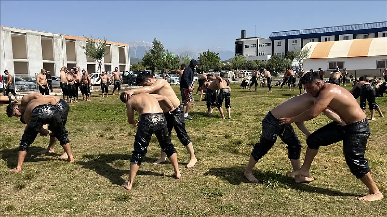 Antalya'nın Kumluca ilçesinde yağlı güreş pehlivanları, yeni sezon için antrenmanlarını sürdürüyor.