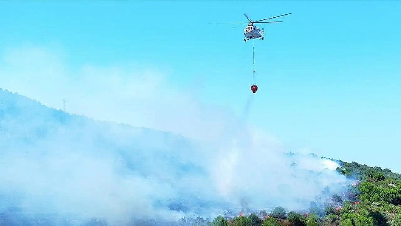 Öte yandan yangın söndürme helikopteri de havadan söndürme çalışmalarına destek veriyor.