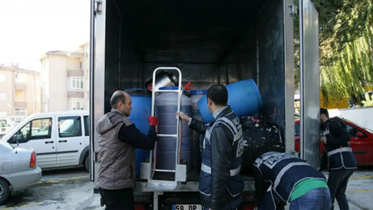Tekirdağ'da yılbaşında piyasaya sürülmek üzere hazırlanmış 5 bin 260 litre kaçak içki ele geçirildi. Baskında gözaltına alınan bir kişi, 'Ticari amaçlı değil, kendim için üretiyorum' dedi