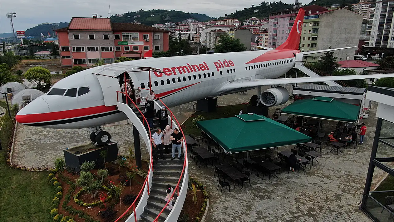 Ankara-Trabzon seferini yaparken 13 Ocak 2018 tarihinde Trabzon Havalimanı'na iniş yaptığı sırada pistten çıkan ardından da Yomra ilçesine çekilerek çürümeye terk edilen yolcu uçağı yapılan çalışmaların ardından pide salonu olarak hizmet vermeye başladı.