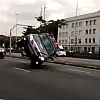 Kontrolden çıkan polis aracı böyle devrildi.