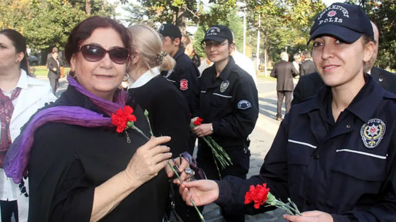 Samsun'da, 24 Kasım Öğretmenler Günü nedeniyle düzenlenen törende, çevik kuvvet polisleri öğretmenlere çiçek dağıtarak günlerini kutladı