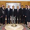 Emniyet Müdürü Hulusi Çelik ve 19 Mayıs PMYO Müdürü Mustafa Demirok ile birlikte emniyet müdür yardımcıları, polis memurları ve öğrencilerde ziyarete katılırken, Emniyet Müdürü Hulusi Çelik, Vali Hüseyin Aksoy’a üzerinde Samsun’da yapılması planlanan yeni emniyet müdürlüğü binasının fotoğrafı bulunan bir kupa hediye etti.