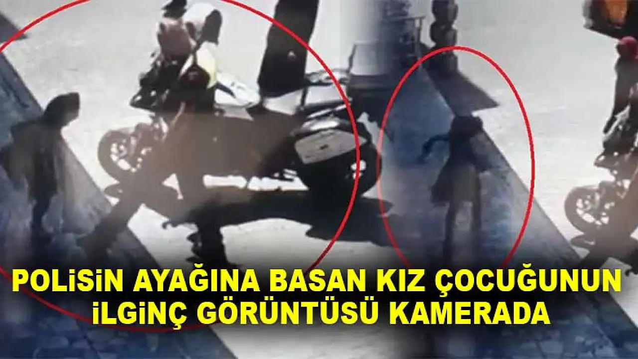 Polisin ayağına basan kız çocuğunun ilginç görüntüsü kamerada