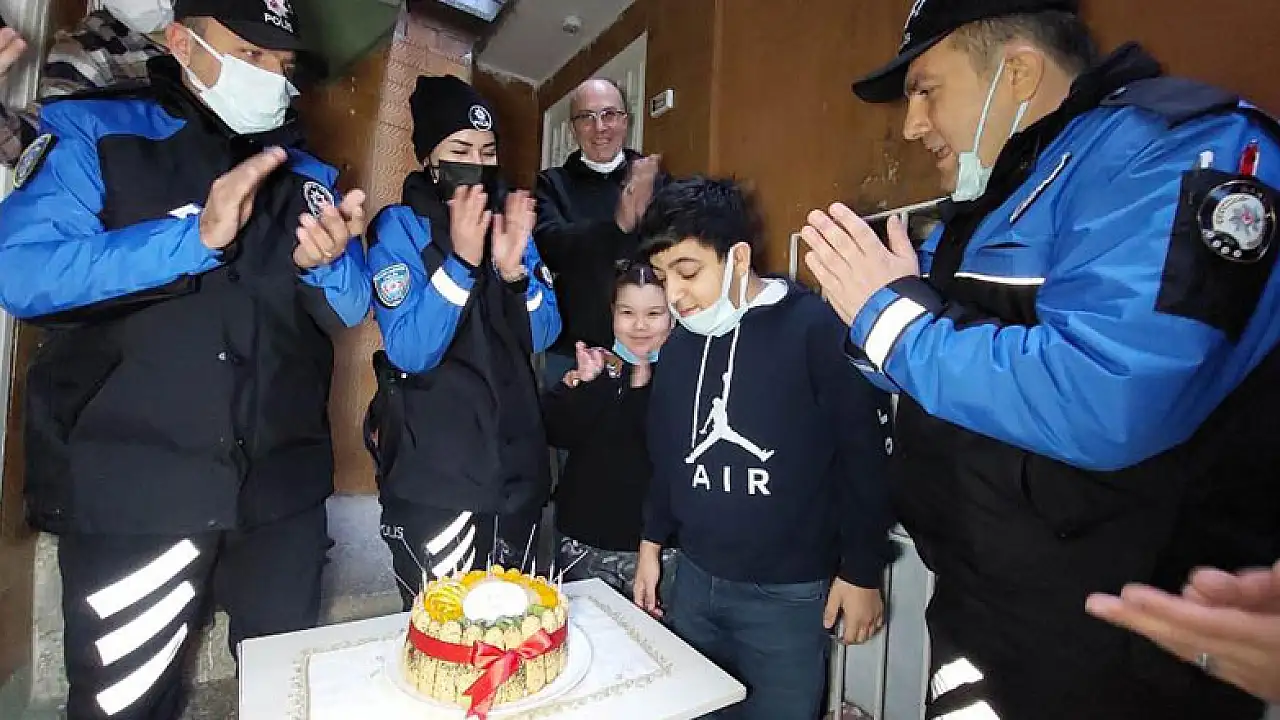 Canik Özel Eğitim Uygulama 8. Sınıf Öğrencisi Eren Cinsoy polisleri görünce mutluluğu gözlerinden okundu. Polis memurları kendilerine pasta kesen Eren'e polis şapkası, polis oyuncak ve çeşitli hediyeler taktim etti. Polis motosikletini de inceleyin siren çalan Eren'i annesi Şengül Cinsoy Samsun Emniyet Müdürlüğüne teşekkür etti. Anne Cinsoy, "Oğlumu kırmadıkları için polis ekiplerine teşekkür ederim. Oğlumu memnun ettiler. Çok sevindim" dedi.