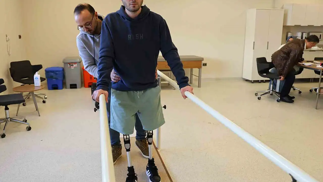 Enkazdan 116 saat sonra iki bacağı kesilerek kurtarılan 25 yaşındaki Adnan Alperen Yaşar, 10 ay sonra protez bacaklarına kavuşarak ilk adımlarını attı.