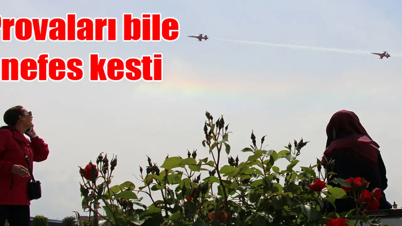 Birbirinden güzel hareketler yapan akrobasi timinin provalarını izleyenler vatandaşlar şaşkınlıklarını gizleyemedi. Telefonlarına sarılan vatandaşlar bu anı görüntülemeye çalıştı. Türk Yıldızları Filo Komutanı Hava Pilot Binbaşı Esra Özatay’ın da yer aldığı Türk Yıldızları ile Solotürk gösterilerini 19 Mayıs'ta yapacak.