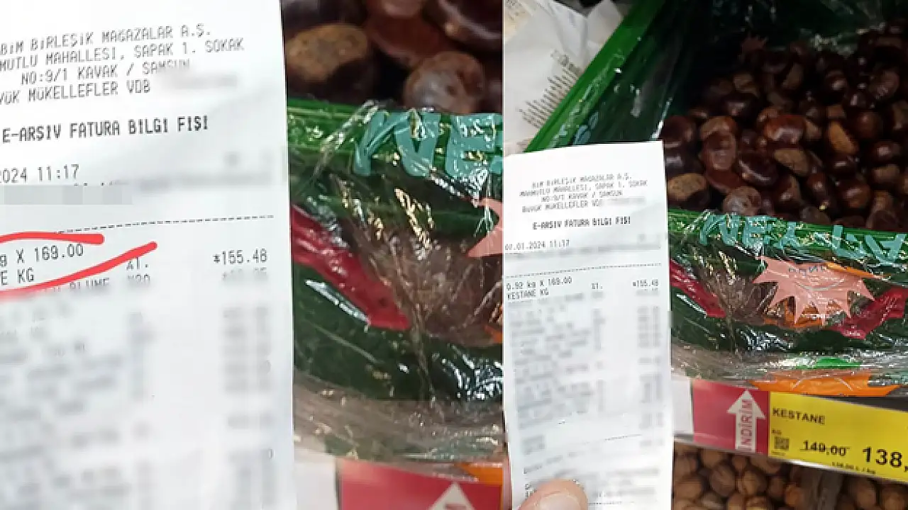 Samsun’da Kavak ilçesine bağlı Çakallı mevkiinde bulunan Mahmutlu Sapağı’ndaki BİM’de ise yılın ilk raf-kasa fiyat farkı vakası yaşandı. Kestaneyi 138 TL’den adlığını zanneden müşteriler, kasadan aldıkları fişte ürünü 169 TL’ye aldıklarını gördü. 31 TL’lik raf-kasa farkına itiraz eden müşteriler, durumun sebebini mağaza çalışanlarına sordular.