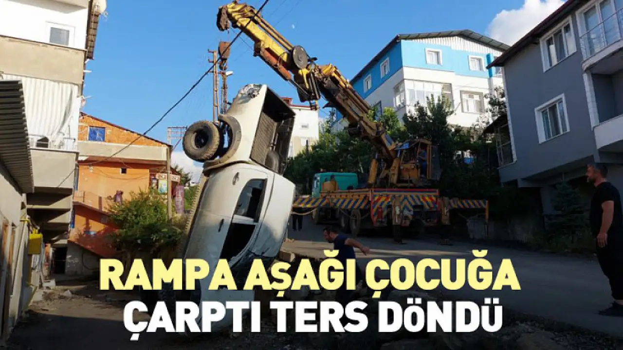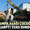 Rampa aşağı çocuğa çarptı ters döndü