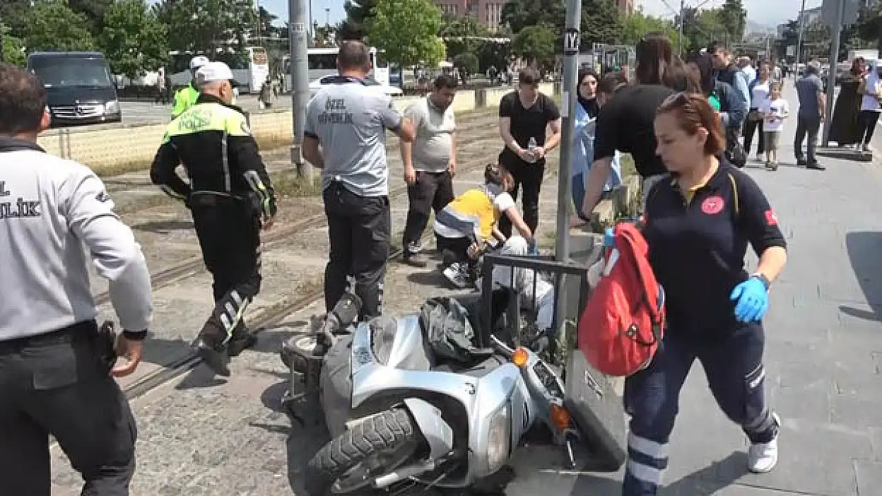 Samsun'da yaya geçidinde raylardan geçmekte olan motosiklet sürücüsü, tramvayın çarpması sonucu yaralandı.