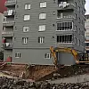 Samsun'da dere ıslah çalışmaları sırasında istinat duvarı ve bahçesi çöken binadaki risk devam ediyor, apartman sakinleri evlerine giremiyor.