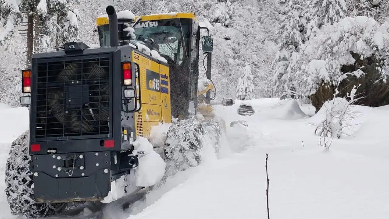 Rize'de kar yağışı nedeniyle 8 ilçede 38 köy yolu ulaşıma kapandı.