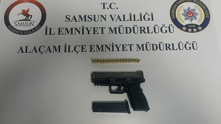 Alaçam ilçesinde bir kişinin üzerinde ruhsatsız tabanca ele geçirildi. Edinilen bilgilere göre, Alaçam İlçe Emniyet Müdürlüğü ekipleri, bir düğünde havaya silahla ateş edildiği ihbarı üzerine çalışma yürüttü. Ekipler, Yakacık Mahallesi'nde yapılan düğündeki aramada O.K'nin (60) üzerinde ruhsatsız tabanca ile 35 fişek ele geçirdi. Şüpheli hakkında yasal işlem başlatıldı.