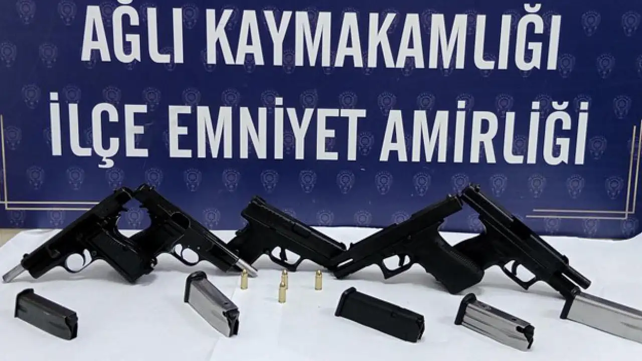 Edinilen bilgiye göre, Ağlı ilçesinde İlçe Emniyet Amirliği ekiplerince yapılan çalışma neticesinde, tespiti yapılan şahıslara yönelik operasyon düzenlendi. Gerçekleştirilen operasyonda 5 adet ruhsatsız tabanca ve fişekler ele geçirildi. Polis ekiplerince olayla ilgili 2 şahıs gözaltına alındı.