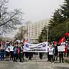 Sağlık çalışanları talepleri için rektörlüğe yürüdü