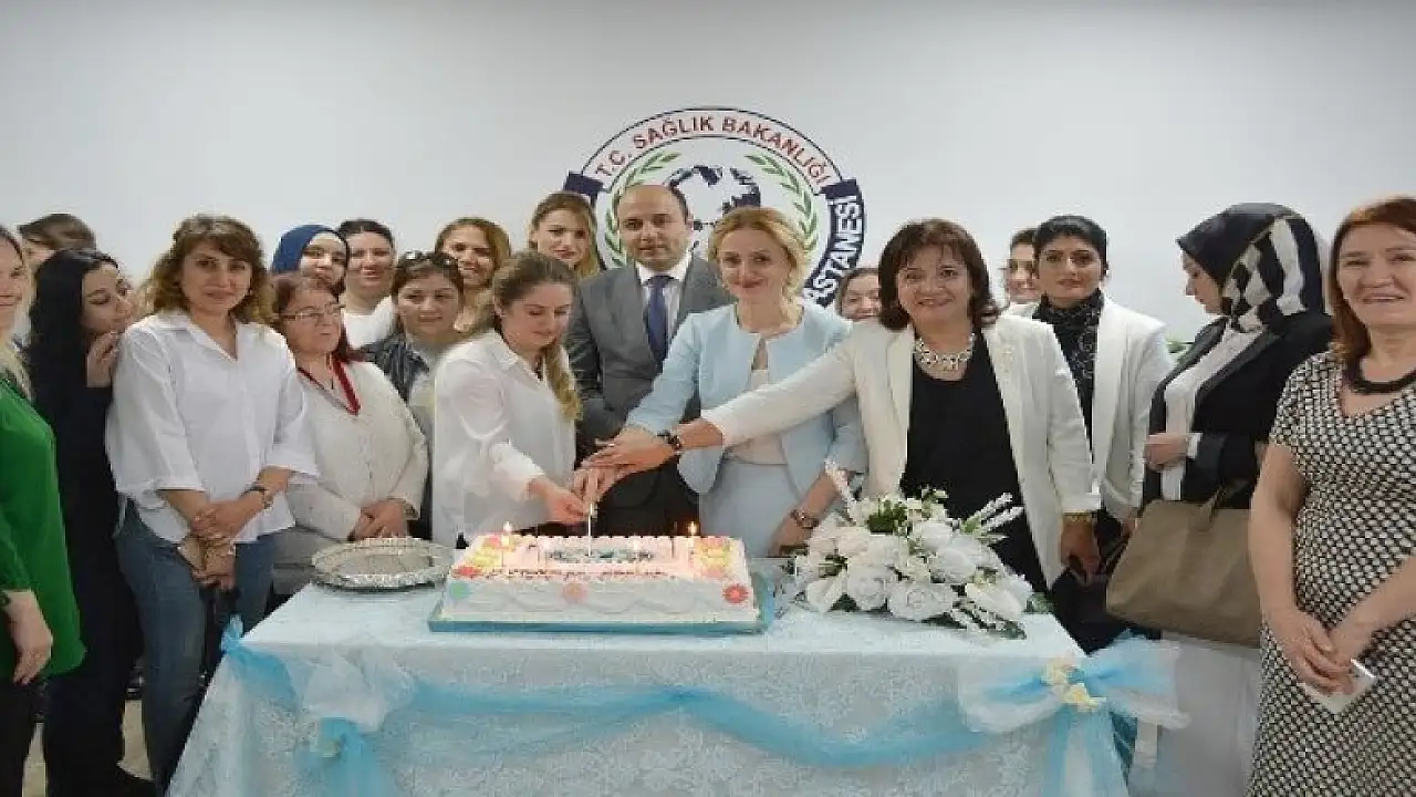 Programda Muhammet Ali Oruç, Emine Sehmen, hastanede görev yapan ebe ve hemşireler pasta keserek Hemşireler ve Ebeler Günü’nü kutladılar.
