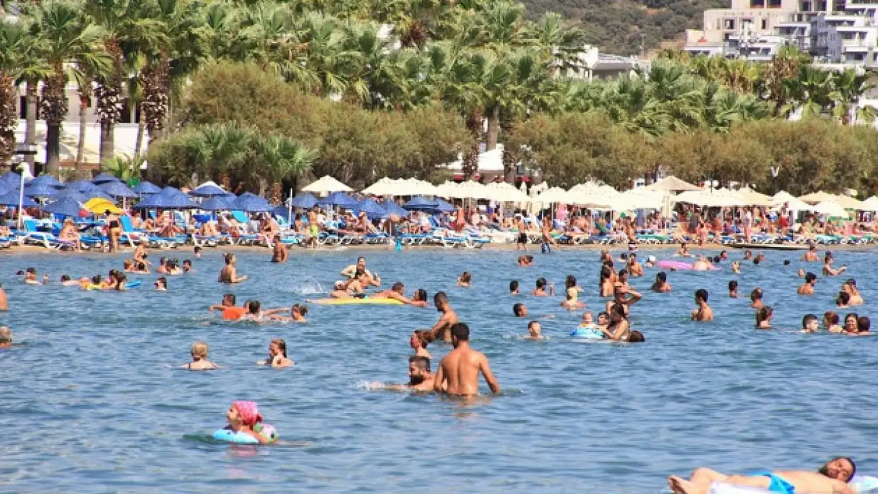 Hava sıcaklığının 38, deniz suyu sıcaklığının ise 26 derece ölçüldüğü Bodrum'da, yerli ve yabancı turistler sahillere akın etti.