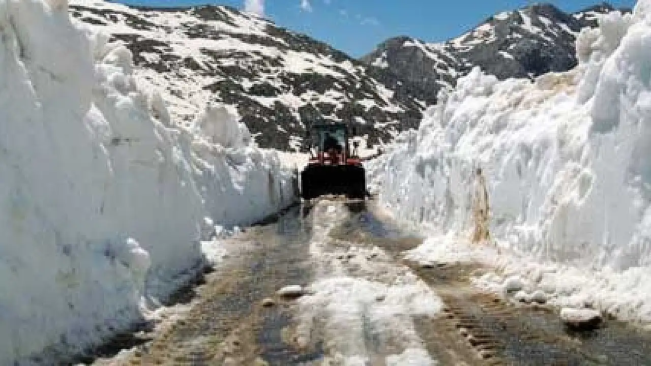 Mayıs ayına girilmesine rağmen Antalya'nın Söbüçimen Yaylası'nda karın hakimiyeti sürüyor. Ekipler de yaklaşık 5 metre kalınlığında karın bulunduğu yolları açmak için çalışmalarını sürdürüyor.