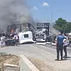 Sakarya'nın Pamukova ilçesinde iki tırın çarpışmasının ardından yangın çıktı. Olay yerine çok sayıda ekip sevk edildi.