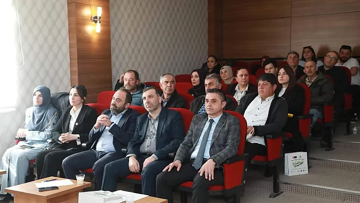 Kavak Tarım ve Orman Müdürlüğü Konferans Salonu'nda düzenlenen eğitimde, üreticiler Hasbi Kayacı ve Murat Kayacı salep bitkisi yetiştiriciliği hakkında tecrübelerini paylaştı.