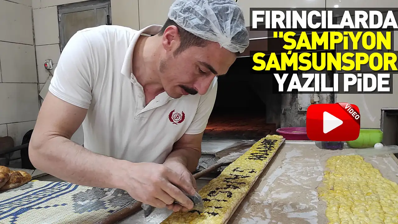 İlçede bir fırında boyu iki metreyi geçen pide yapan fırıncılar, pidenin üzerine çörek otuyla "Şampiyon Samsunspor" yazdı.